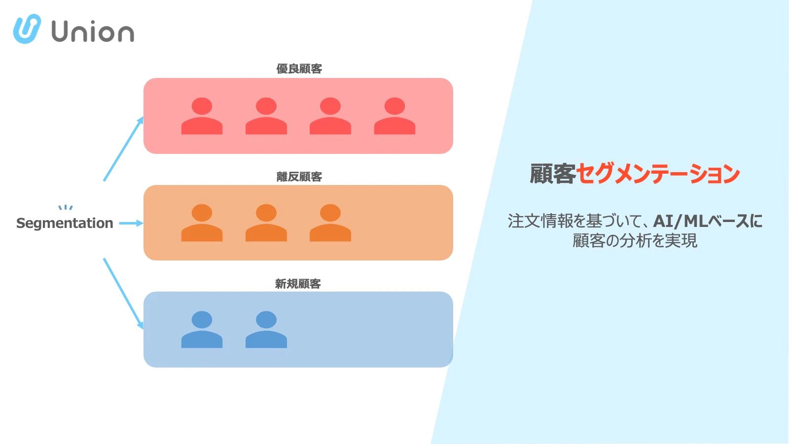 当社のECアシスタントSaaS『Union』は、AI/ML技術の力を活用し、eコマースビジネスが顧客一人ひとりに特別なショッピング体験を提供できるよう支援します。パーソナライズされたレコメンデーションを活用することで、小売業者はコンバージョン率の向上と平均注文金額の増加を期待できます。また、成長中の店舗に対しては無料プランもご用意しています。私たちはマーチャントの収益最大化と顧客満足度の向上に注力しています。